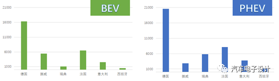 圖4 1月(yuè)主要(yào)的(de)歐洲國(guó)家(jiā)的(de)BEV和(h×♦∞>é)PHEV銷量