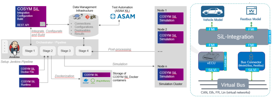 軟件(jiàn)在環SiL的(de)最關鍵的(de)一(yī)個(gè)核心就(δ ↔jiù)是(shì)虛拟化(huà):即通(tōng)過将真實控制(zhì)器(qì)轉化( ✔huà)為(wèi)虛拟控制(zhì)器(qì),部署到(dβ∏ào)PC上(shàng)集成環境和(hé)聯合仿真平台,接入CI/CT/CD自(zì)動化(huà)流水(shuǐ)線,并上(shàng)雲端φ¥≈↓進行(xíng)大(dà)規模測試,從(cóng)而搭建φ≠∞$完整的(de)DevOps的(de)SiL平台。